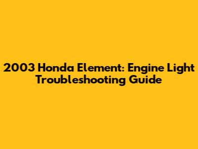 2003 Honda Element: Engine Light Troubleshooting Guide