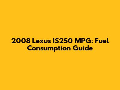 Hey guys! Let's dive into the fuel consumption of the 2008 Lexus IS250. If you're considering buying one or already own this sweet ride, understanding its MPG (miles per gallon) is super important. Fuel efficiency affects your wallet and helps you make informed decisions about maintenance and driving habits. So, buckle up as we explore everything you need to know about the 2008 Lexus IS250's fuel consumption.