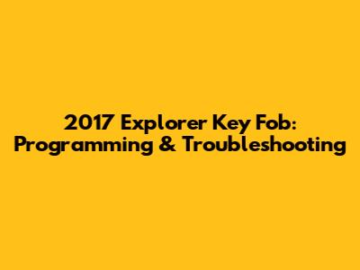 2017 Explorer Key Fob: Programming & Troubleshooting