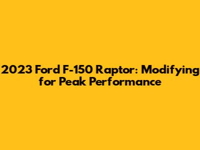 2023 Ford F-150 Raptor: Modifying For Peak Performance