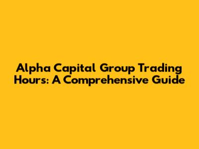 Alpha Capital Group Trading Hours: A Comprehensive Guide