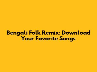 Bengali Folk Remix: Download Your Favorite Songs