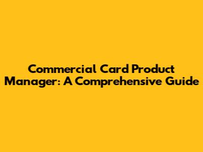 Commercial Card Product Manager: A Comprehensive Guide