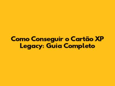 Como Conseguir O Cartão XP Legacy: Guia Completo