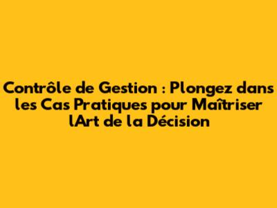 Comprendre les Fondamentaux du Contrôle de Gestion à travers des Cas Pratiques