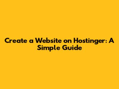 Create A Website On Hostinger: A Simple Guide