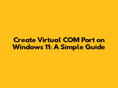 Create Virtual COM Port On Windows 11: A Simple Guide