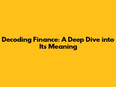 Decoding Finance: A Deep Dive Into Its Meaning
