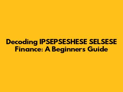 Decoding IPSEPSESHESE SELSESE Finance: A Beginner's Guide