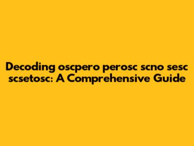 Decoding Oscpero Perosc Scno Sesc Scsetosc: A Comprehensive Guide