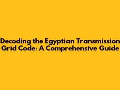 Decoding The Egyptian Transmission Grid Code: A Comprehensive Guide