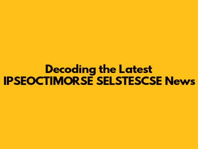 Decoding The Latest IPSEOCTIMORSE SELSTESCSE News