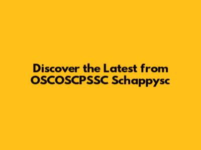 Discover The Latest From OSCOSCPSSC Schappysc