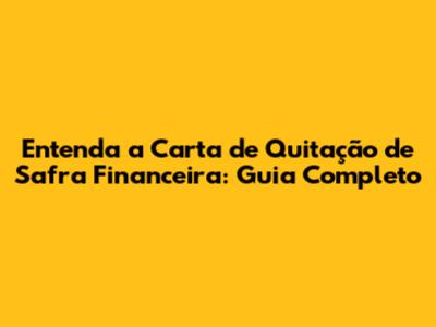 O Que é a Carta de Quitação de Safra Financeira?