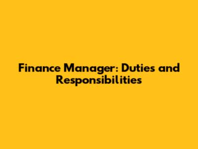 Finance Manager: Duties And Responsibilities