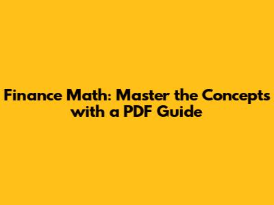 Finance Math: Master The Concepts With A PDF Guide