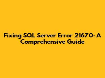 Fixing SQL Server Error 21670: A Comprehensive Guide