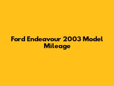 Understanding the Ford Endeavour 2003 Mileage