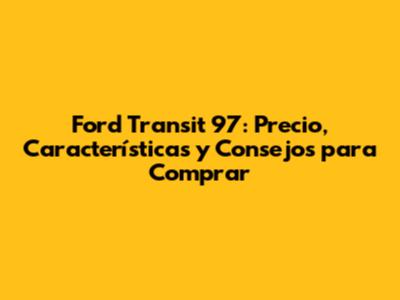 Ford Transit 97: Precio, Características Y Consejos Para Comprar