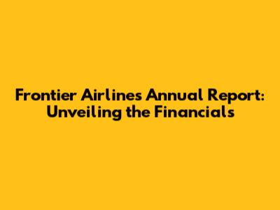 Frontier Airlines: A Deep Dive Into The Annual Report