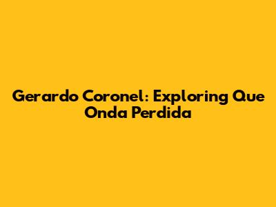 Gerardo Coronel: Exploring Que Onda Perdida