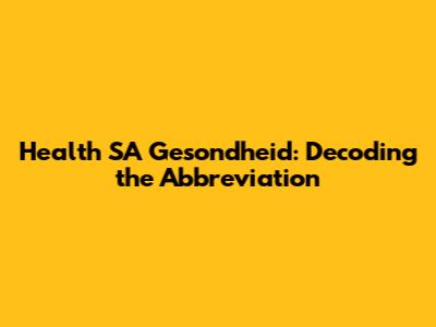 Health SA Gesondheid: Decoding The Abbreviation