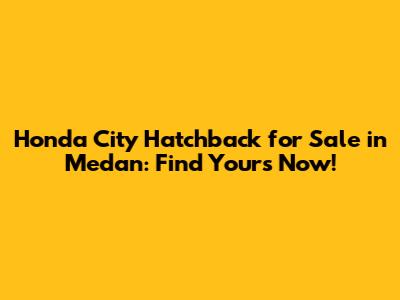 Hey guys! Are you currently in Medan and looking to snag a Honda City Hatchback? You've landed in the right spot! This article will dive into everything you need to know about finding your dream ride in Medan. Let’s explore why the Honda City Hatchback is such a hot pick and how you can find the perfect one for you.