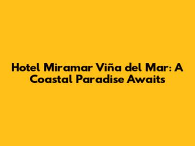 Hotel Miramar Viña Del Mar: Your Coastal Escape