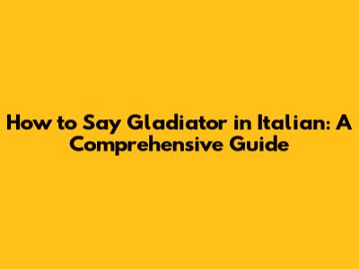 How To Say Gladiator In Italian: A Comprehensive Guide