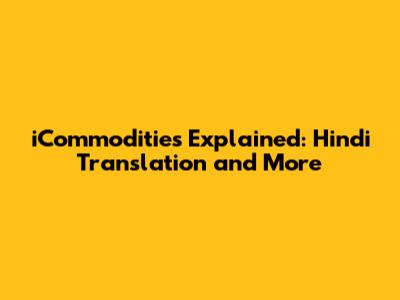 ICommodities Explained: Hindi Translation And More