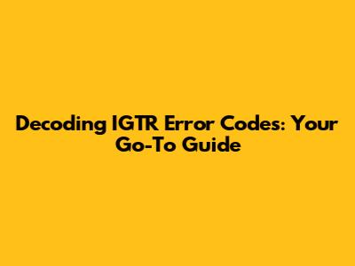 IGTR Error Codes: Decoding The Mysteries