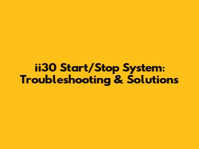 Ii30 Start/Stop System: Troubleshooting & Solutions