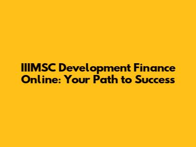 IIIMSC Development Finance Online: Your Path To Success