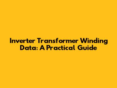 Inverter Transformer Winding Data: A Practical Guide