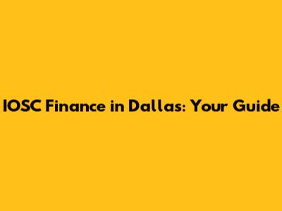 IOSC Finance In Dallas: Your Guide