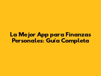 La Mejor App Para Finanzas Personales: Guía Completa