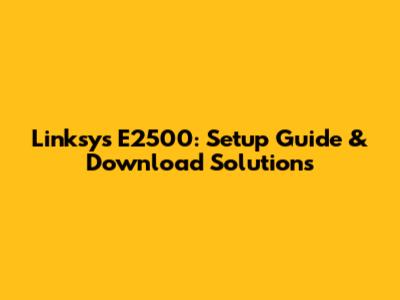 Linksys E2500: Setup Guide & Download Solutions
