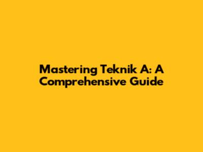 Mastering Teknik A: A Comprehensive Guide
