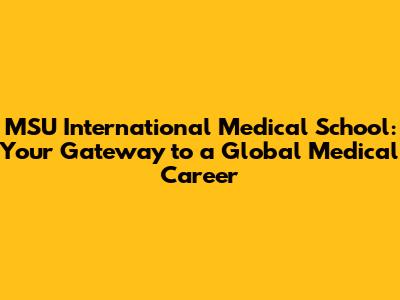 MSU International Medical School: Your Path To Global Healthcare