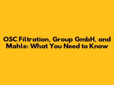 OSC Filtration, Group GmbH, And Mahle: What You Need To Know