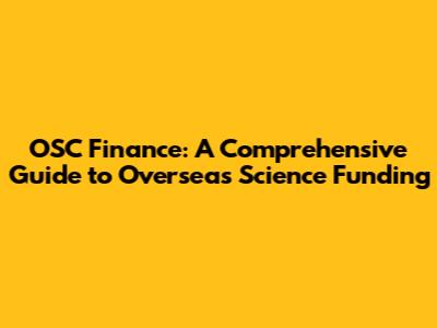 OSC Finance: A Comprehensive Guide To Overseas Science Funding