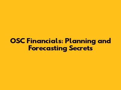 OSC Financials: Planning And Forecasting Secrets