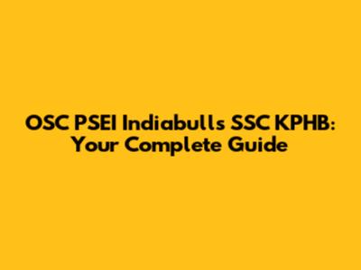 OSC PSEI Indiabulls SSC KPHB: Your Complete Guide