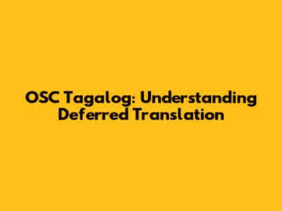 Hey guys! Let's dive into the world of OSC Tagalog and specifically tackle the concept of deferred translation. If you've ever scratched your head wondering how certain things get translated later than expected, or if you're just curious about the techy side of language processing, you're in the right place. We're going to break down what deferred translation is, why it's used, and how it all works in the context of OSC Tagalog. Get ready for a fun and informative journey!