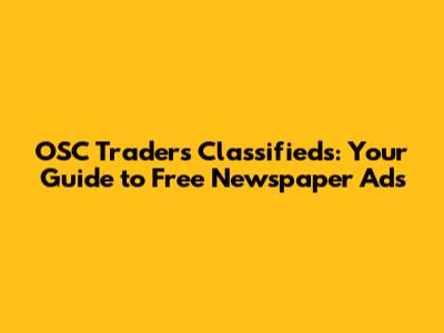 OSC Traders Classifieds: Your Guide To Free Newspaper Ads