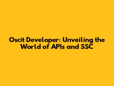 Oscit Developer: Unveiling The World Of APIs And SSC