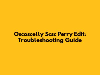 Oscoscelly Scsc Perry Edit: Troubleshooting Guide