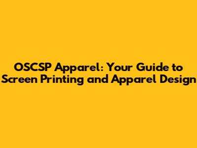 OSCSP Apparel: Screen Printing & Apparel Design Guide