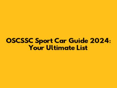 OSCSSC Sport Car Guide 2024: Your Ultimate List