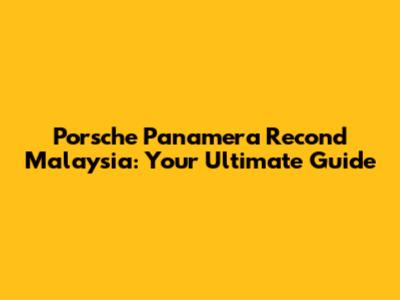 Porsche Panamera Recond In Malaysia: A Complete Guide